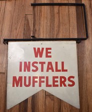 Vintage We Install Mufflers ADVERTISING Sign Hanger Bracket Gas Oil Station