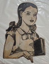 Vintage PRESSED STEEL School Zone Girl Safety Slow Down Road ADVERTISING SIGN