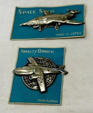 Vintage Tin Space Ship & Airplane w/Globe Brooches, Japan