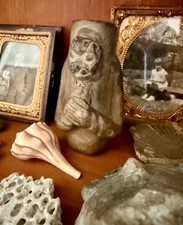 Reproduction Ancient Pre Columbian Human Effigy Artifact Pottery 4 1/4"X2 1/4"