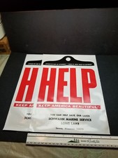 2 Vintage Advertising LITTERBAG sign SCHWAHN MARINE SERVICE LONG LAKE SARONA WI