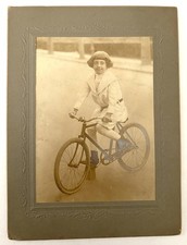 antique cabinet card BICYCLE and Girl picture Photograph TOC