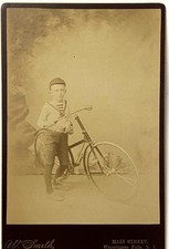 antique cabinet card BICYCLE and Boy picture Photograph TOC Man and his bike