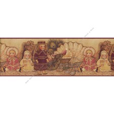 Victorian Antique Dolls Baby Buggies Fan Peacock Feather Brown Wallpaper Border