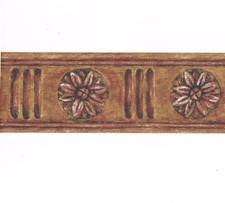 Brick Red Brown Rosette Flower Medallion Southwest Rustic Wall paper Border