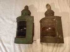 Pair of Antique Dietz Nautical Ship Lanterns Blue & Red