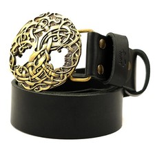 Leather belt with brass buckle Yggdrasil, Tree of Life, Scandinavian mythology