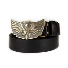 Leather belt with brass buckle Eagle with sword, heraldic eagle, winged falcon