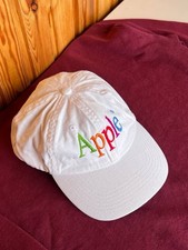Vintage 90s Embroidered Apple Computers Baseball Cap Used Stains Rainbow Apple
