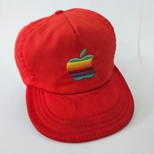 Vintage Apple Hat Mac Macintosh Computers Red Trucker Snapback Cap USA Made!