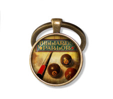 Vintage Design Billiards Pool Sport - Handmade Glass Pendant KEYCHAIN Key Ring
