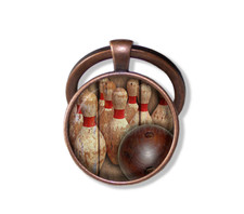 Vintage Design Bowling Team Sport - Handmade Glass Pendant KEYCHAIN Key Ring