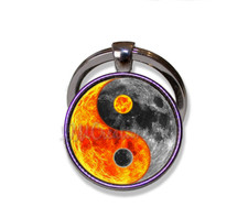 Yin Yang Sun and Moon - Handmade ROUND Glass Pendant Keychain KEY RING