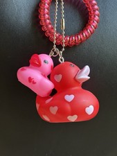 Vintage Pair Rubber Ducks Hearts Toy Bag Purse Charm Fob Keychain Handmade