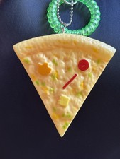 Vintage Pizza Slice Toy Bag Charm Fob Keychain Handmade Mini Play Food Ornament