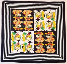 SCARF VINTAGE AUTHENTIC KIDS TOYS TEDDY BEAR BLACK BROWN 34" SQUARE