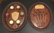 2 Vintage History Antique Golf Clubs & Golf Ball Hanging Wall Plaque By Giny Inc