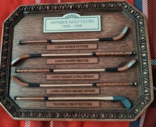 Miniature antique golf clubs 1850-1880 wall plaque 9.5x7.5 inches