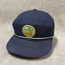 Vintage Masters Hat Cap Mens Medium Blue Rope Patch Leather Strap Golf 70s FLAWS