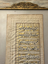 Antique Persian Islamic Calligraphy Gold Illuminated Manuscript Nasta’liq