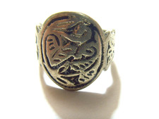 antique Kazakh tribal high silver Bactria motif ring size 10 Central Asia 52266