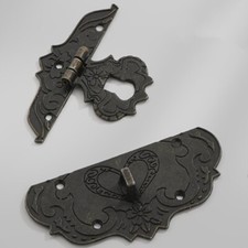 Engraved Latch Hasp Antique Hinges for Wooden Box and Corner Protectors Set