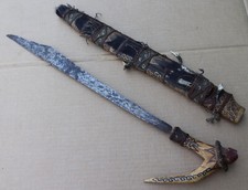 Antique 19 Century Indonesian Kris Damascus Blade Short Sword Knife