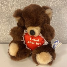 Vintage Mary Meyer Teddy Bear Mini Stuffed Plush Toy 5" I Need Your Luv Heart