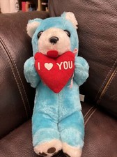Vintage Ace Novelty Blue Teddy Bear With Heart Stuffed Animal Toy I Love You