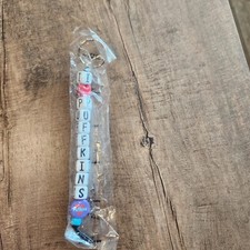 Vintage Puffkins Toy Bead Keychain "I Heart Puffkins" Plush Promo Swibco New Blu
