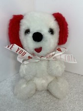 Vintage Animal Toys Plush Red & White I Love You Dog Plush 7 Inch Stuffed Toy