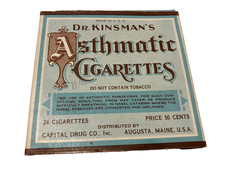 ANTIQUE EMPTY KINSMAN'S ASTHMATIC CIGARETTES BOX