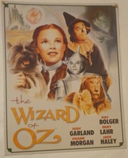 SIGN TIN LITHO WIZARD OF OZ CAST POSTER ILLUSTRATION METAL ADVERTISING 16x12.5