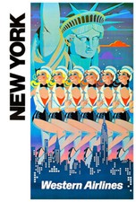 Western Airlines - New York - Rockettes - 1960s - Vintage Airline Travel Poster