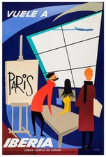 Iberia - Paris - Spanish Airline - 1960s - Vintage Airline Travel Poster