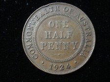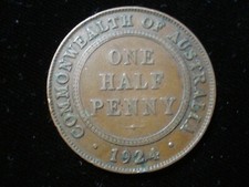 Australian 1924 Half Penny Coin 6 Pearls KGV Scarce wt Planchet Flaw Error