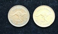 1949/62 Australian HALF Penny PLANCHET ERROR AND DIE CRACK ERRORS X 2 COINS