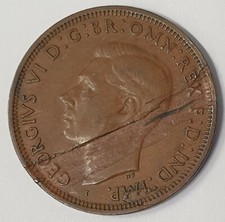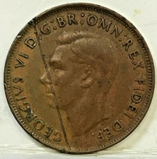 1948 Penny Mint Error Planchet Flaw Australian PreDecimal Coin (Lot 2534)