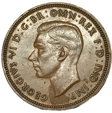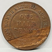 AUSTRALIA 1939 HALF PENNY KEY DATE with ERROR PLANCHET FLAW ON REVERSE.