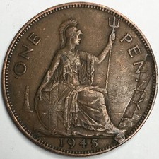 1945 United Kingdom 1 Penny - George VI - (VF) Lamination Error KM#845 - 3709