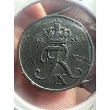1953 Denmark 5 Ore Zinc Coin Beautiful - Untarnished + Lamination Error Z833