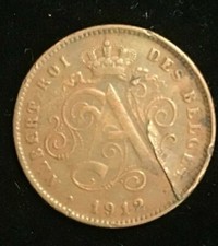 Belgium 1912 King Albert TWO Cent Coin Lamination error.