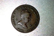 SPAIN 2 Maravedis 1858 BARCELONA Mint XF, LAMINATION ERROR
