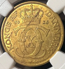 🔥 1935 N GJ Denmark Krone NGC MS 62: RARE OBV & REV LAMINATION ERROR 🔥