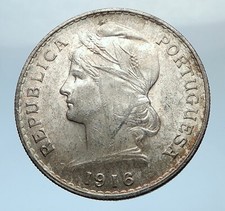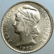 1915 PORTUGAL with Liberty Antique Genuine Silver PORTUGUESE Coin 1 Escudo