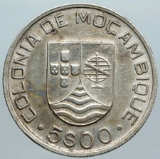 1935 PORTUGAL Colony MOZAMBIQUE Antique Vintage Silver 5 Escudos Coin i105104