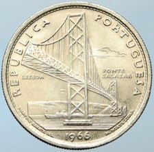 1966 PORTUGAL Opening SALAZAR BRIDGE Antique Old Silver 20 Escudos Coin i109827