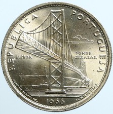 1966 PORTUGAL Opening SALAZAR BRIDGE Antique BU Silver 20 Escudos Coin i100255