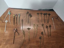 Hair Pin, Antique,prong set stones,Enamel, Unique