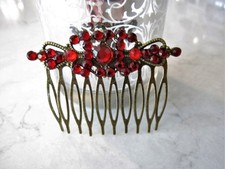 Antique bronze garnet red crystal hair comb barrette clip bridal clip bridal